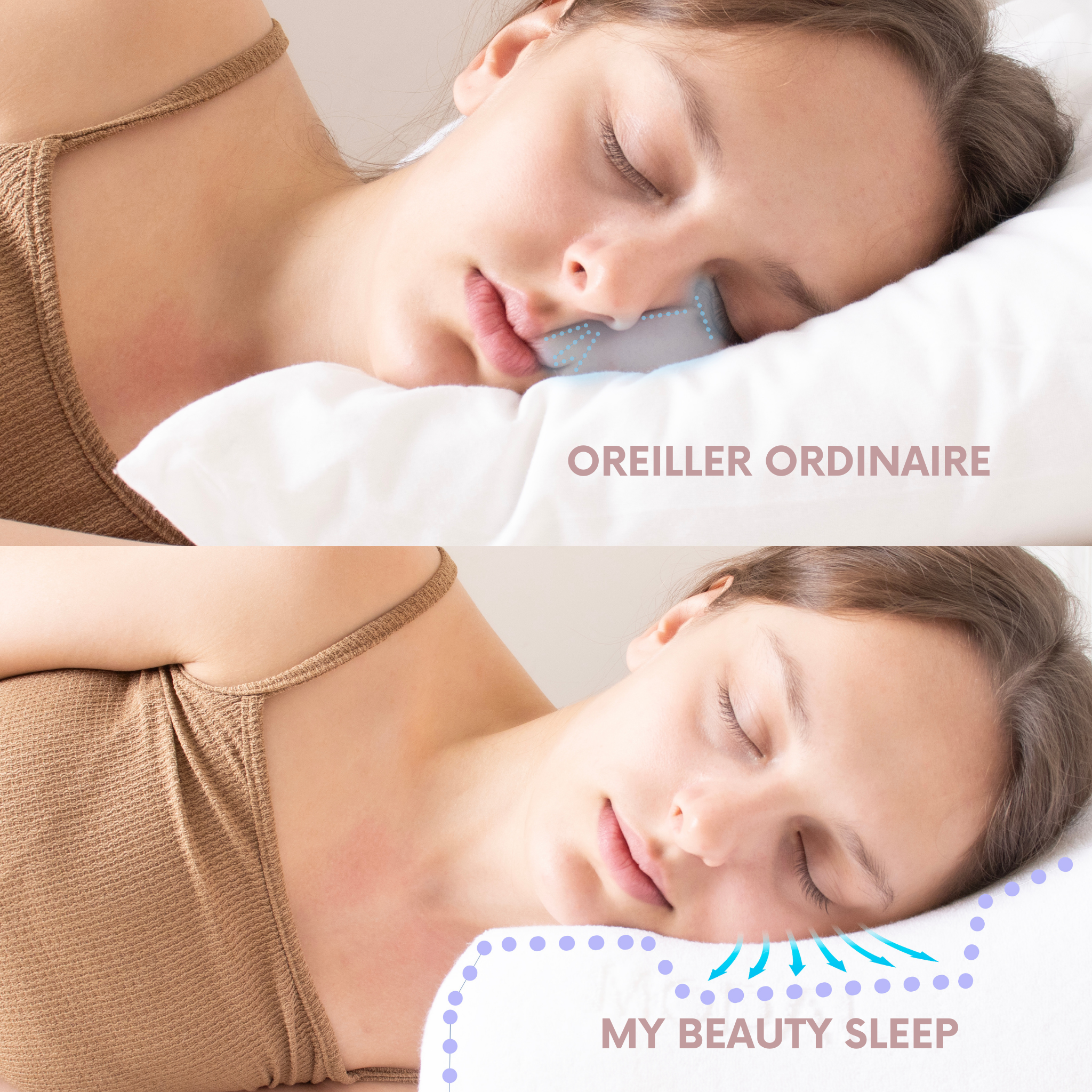 Conçu par des experts du sommeil, l’Oreiller Beauté™ épouse naturellement la courbure du cou et maintient la colonne vertébrale dans un alignement idéal. Cette position ergonomique réduit les tensions au niveau des cervicales, soulage les douleurs dorsales et favorise une meilleure circulation. Résultat : un sommeil plus profond, un réveil sans raideurs et un bien-être durable au quotidien.